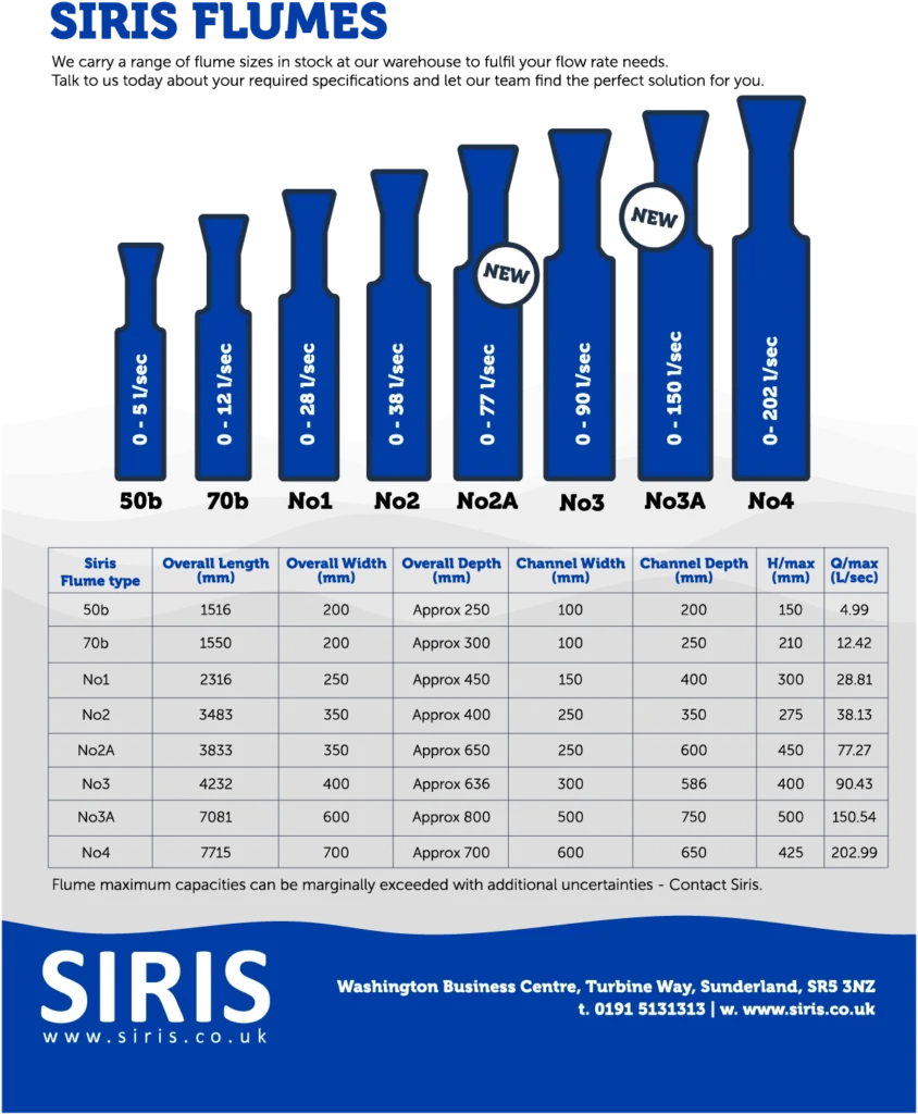 We do a range of flumes that cover various flow rates and applications. Two of our standard-sized small flumes can be used for final effluent flow measurement or clean water discharge applications where the flow rates are significantly low, which would often require alternative flow measurement systems to be applied.